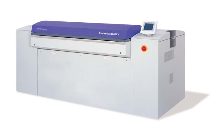 Screen's flagship 8-up CTP device is well suited to companies with above-average plate demands. The PlateRite 8800 series offers fast, reliable output, making it the perfect tool for the most advanced digital workflows. The PlateRite 8800 series features four models that handle plate sizes from 12" x 14.6" to 45.6" x 37". Multi-channel imaging heads based on grating light valve technology (GLV) ensure exceptional throughput. Support for imaging resolutions of 1,200, 2,400, 2,438 and 2,540 dpi is standard. The PlateRite 8800E outputs 24 plates per hour when using a 40.5 " x 31.4" plate and 2,400 dpi resolution. The PlateRite 8800S outputs 32 plates per hour. The PlateRite 8800Z has an option for resolutions of 4,000 dpi, high enough for the printing of bonds, securities and lenticular products. It outputs 42 plates per hour. The PlateRite 8800ZX also is capable of 4,000 dpi resolution and boasts a top speed of 50 plates per hour. |